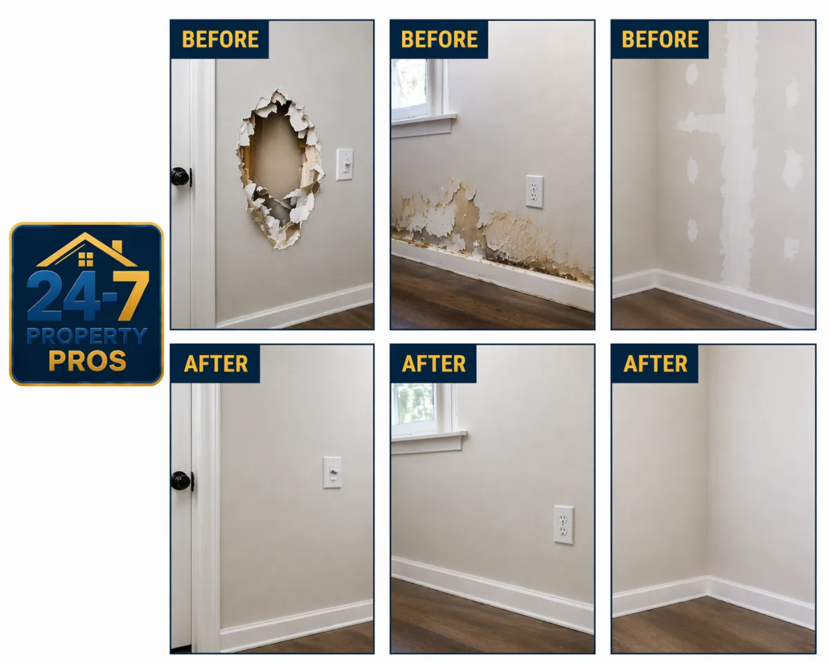 At 24-7 Property Pros, we provide drywall repair and installation with a focus on smooth finishes and long-lasting results.