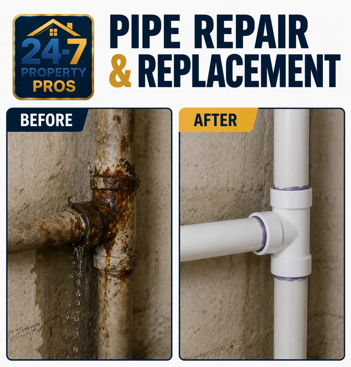 At 24-7 Property Pros, we provide dependable plumbing services designed to fix problems quickly and prevent future issues.